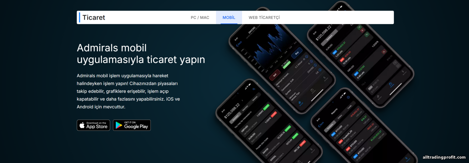 iOS/Android’de Admirals: Trade & Invest uygulaması sadece bir MetaTrader kabuğu değil, bağımsız bir platformdur. 75+ indikatör, modern arayüz, hızlı emir girişi, hesap yönetimi, TradingView grafik entegrasyonu ve haber bölümü sunar. Puanlar App Store’da ~4,8, Google Play’de ~4,4 civarındadır. Klasikleri tercih ederseniz MT4/MT5 mobil de Admirals giriş bilgilerinizle çalışır. İki faktörlü kimlik doğrulama (2FA) desteklenir.