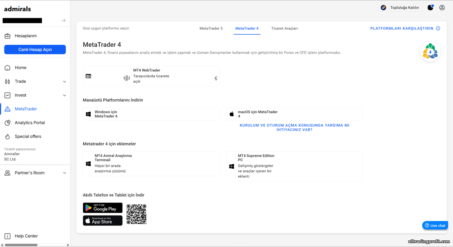 - Hesap türleri: Trade.MT4, Zero.MT4, Trade.MT5, Zero.MT5, Invest.MT5 (detaylar aşağıda)