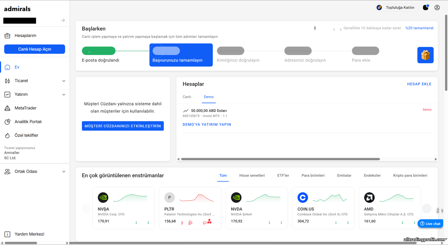 - Admirals müşteri desteği