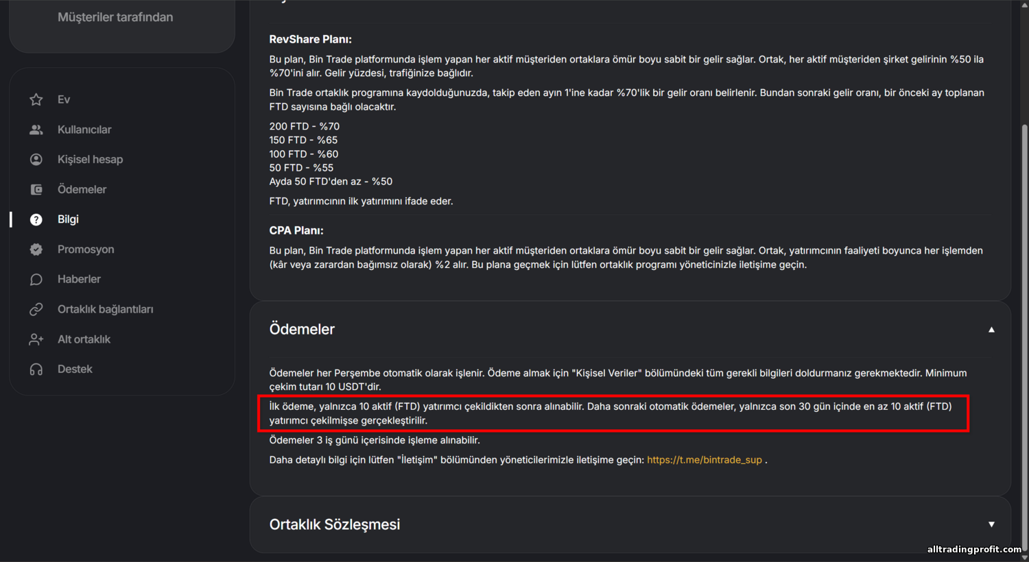- BinTrade ortaklık programı şartları