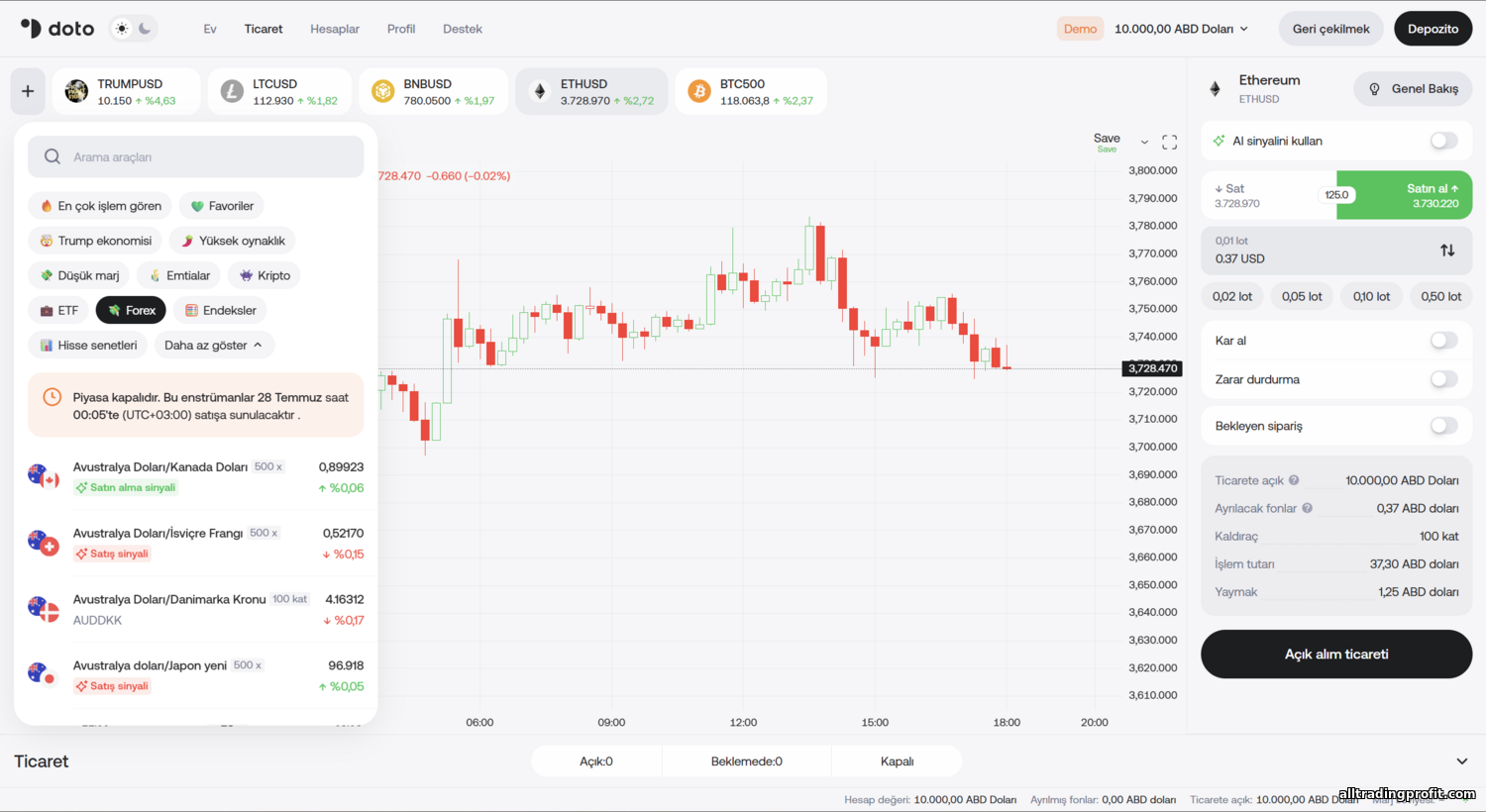 - Doto ve rakipleri: FXPro, AMarkets, RoboForex