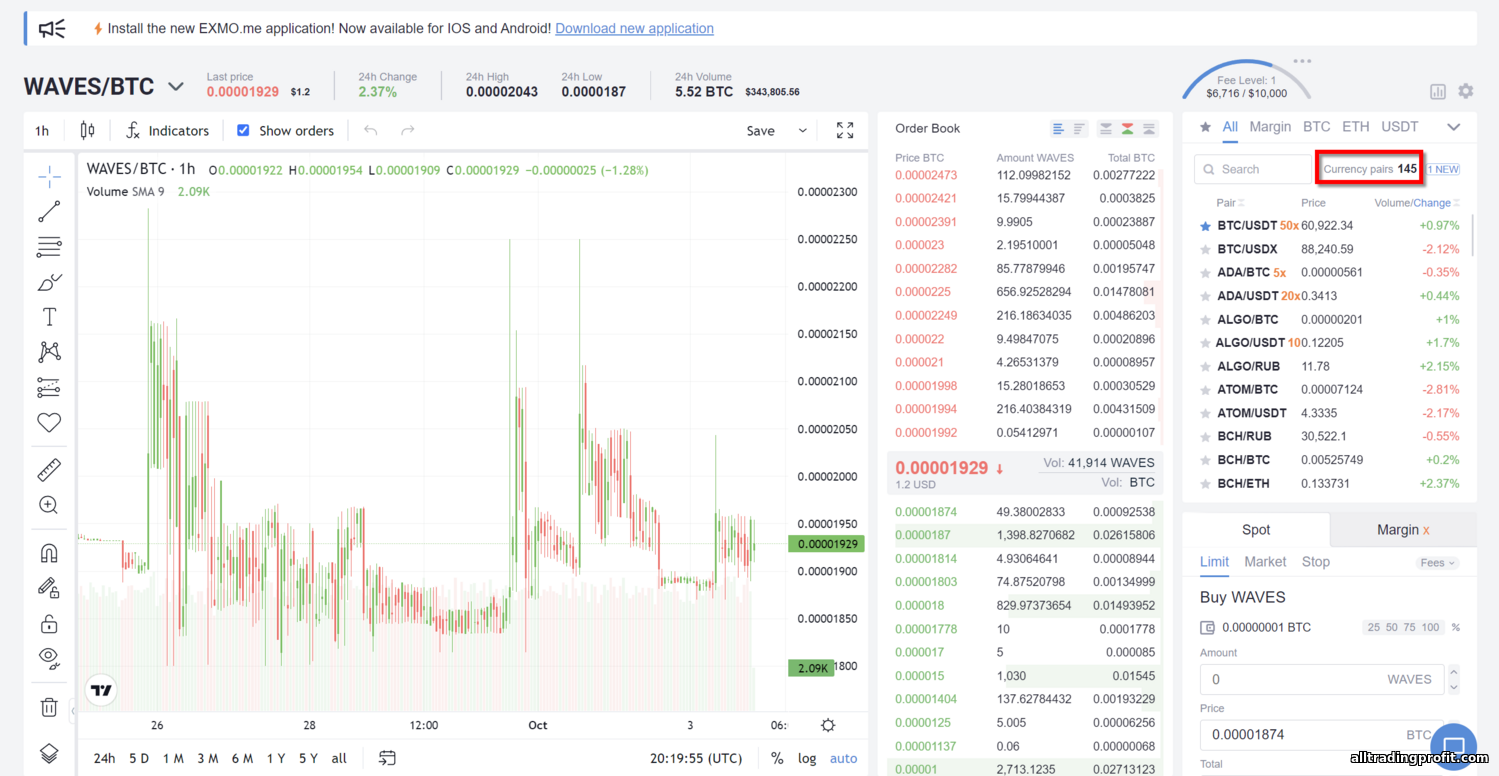 EXMO’yu tüccarlar için çekici kılan ilk unsur, itibari para birimleriyle işlem yapmadaki rahatlıktır. Platform USD, EUR, GBP, PLN, UAH, TRY gibi birçok ulusal para birimini desteklemektedir. Hesabın doğrudan banka kartlarıyla finansmanı ve aşina olunan fiat birimlerinde işlem yapılabilmesi, EXMO’nun ilk dönemlerde hızla popülerleşmesini sağlamıştır. Şu anda borsada kripto-kripto ve kripto-fiat olmak üzere 155’ten fazla işlem çifti mevcuttur ve varlık yelpazesi giderek genişlemektedir.