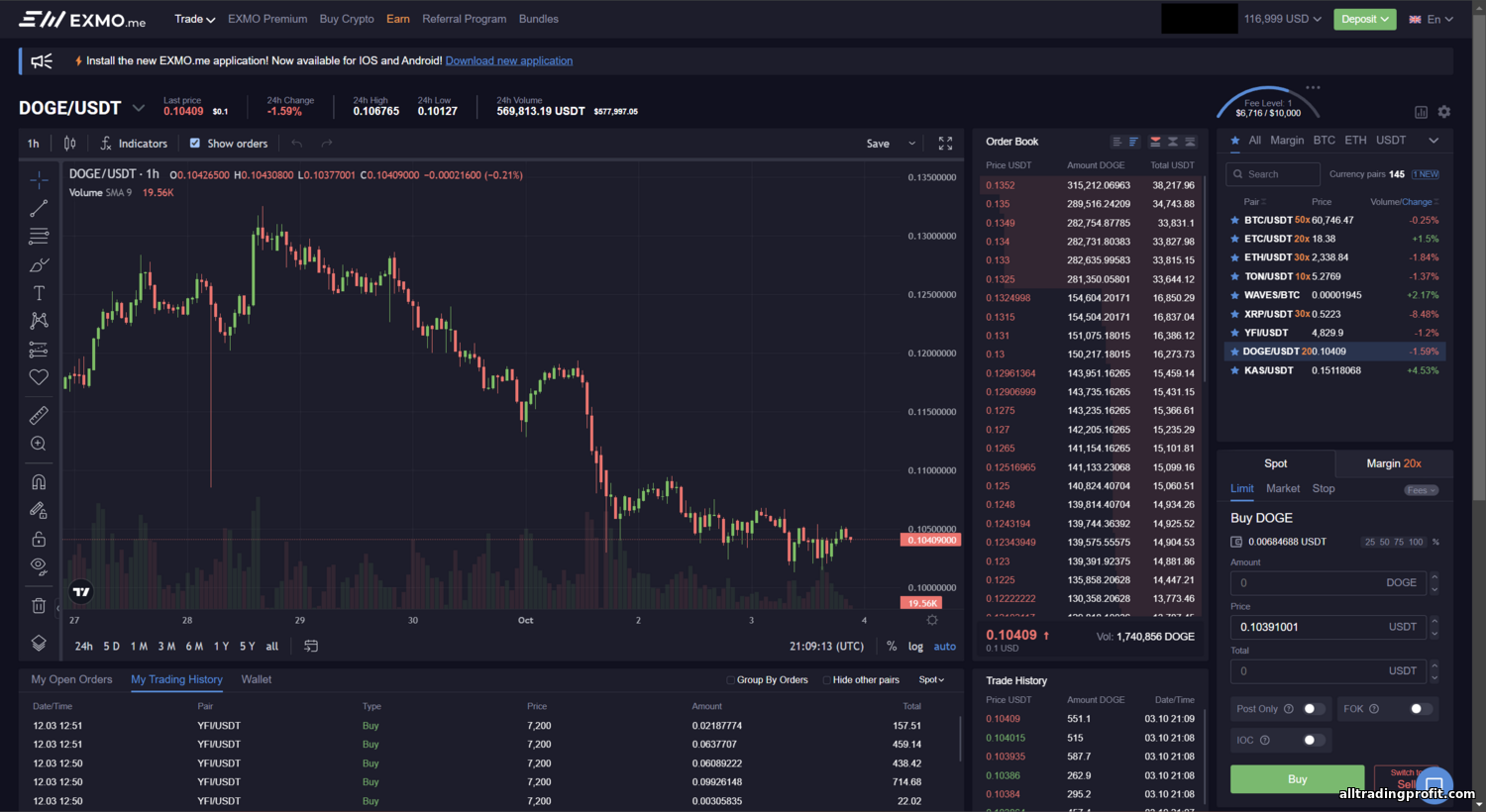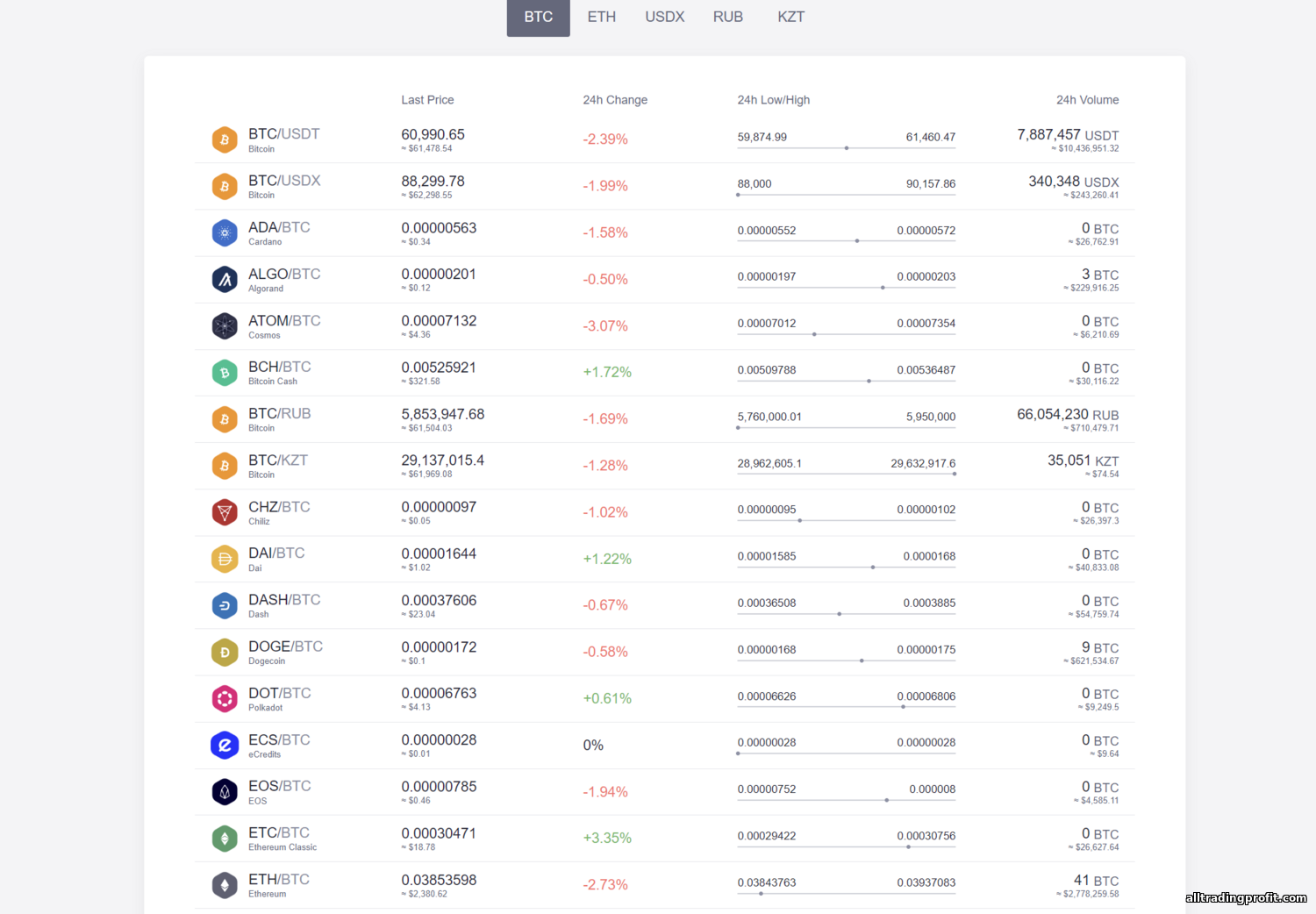 - OTC Desk – büyük hacimli alım-satımların piyasa fiyatını etkilemeden yapılması için tezgâh üstü hizmet. 100 bin dolar ve üzeri miktarlar için EXMO ekibi, likidite sağlayarak işlemin borsa fiyatına yansımasını önleyebilir.