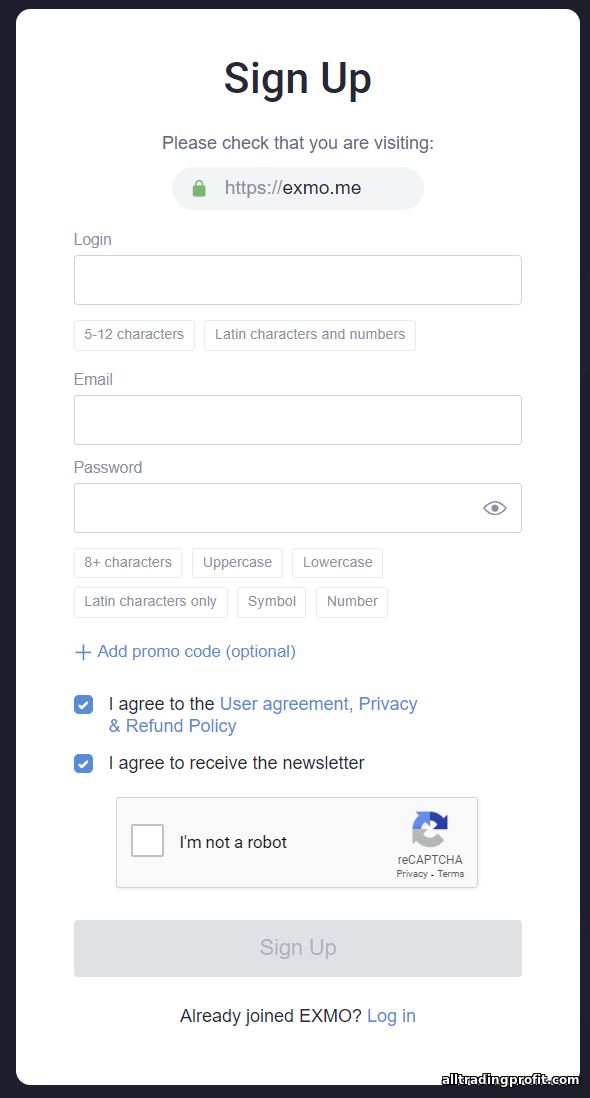 EXMO’da işlem yapmak için öncelikle bir hesap oluşturup kimlik doğrulaması (KYC) yapmanız gerekir. Kayıt işlemi oldukça basittir ve birkaç dakika sürer: resmi siteye girip “Sign Up” butonuna tıklayın. E-posta adresinizi ve güçlü bir şifreyi girip, gelen doğrulama bağlantısına tıklayarak onaylayın. Bu aşamada temel bir hesabınız olur ve profilinize giriş yapabilirsiniz.