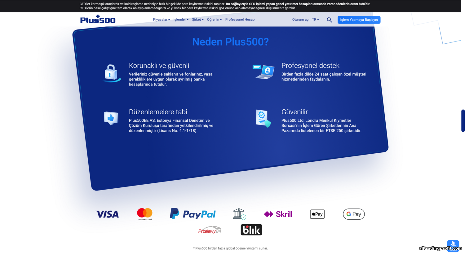 Broker güvenilirliği kilit bir konudur. Bu noktada Plus500, güçlü lisans seti ve müşteri koruma önlemlerini gösterebilir.