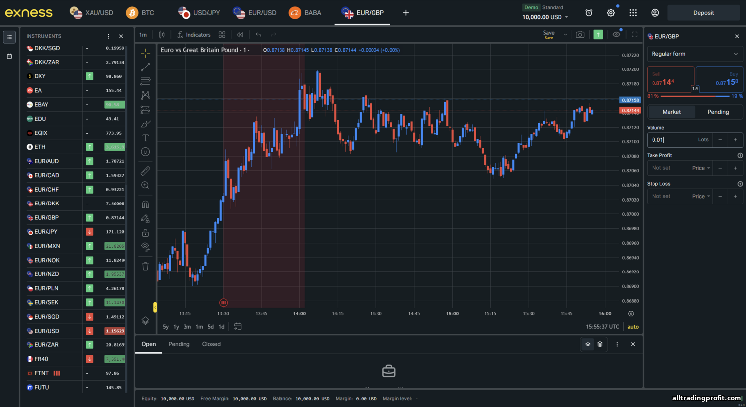 - Nitelikli platformlar: MetaTrader 4/5 yanında kendi çözümleri — Exness Web Terminali ve mobil uygulama. Platformlar stabil, algoritma dostu (EA’ler desteklenir) ve zengin özelliklidir.