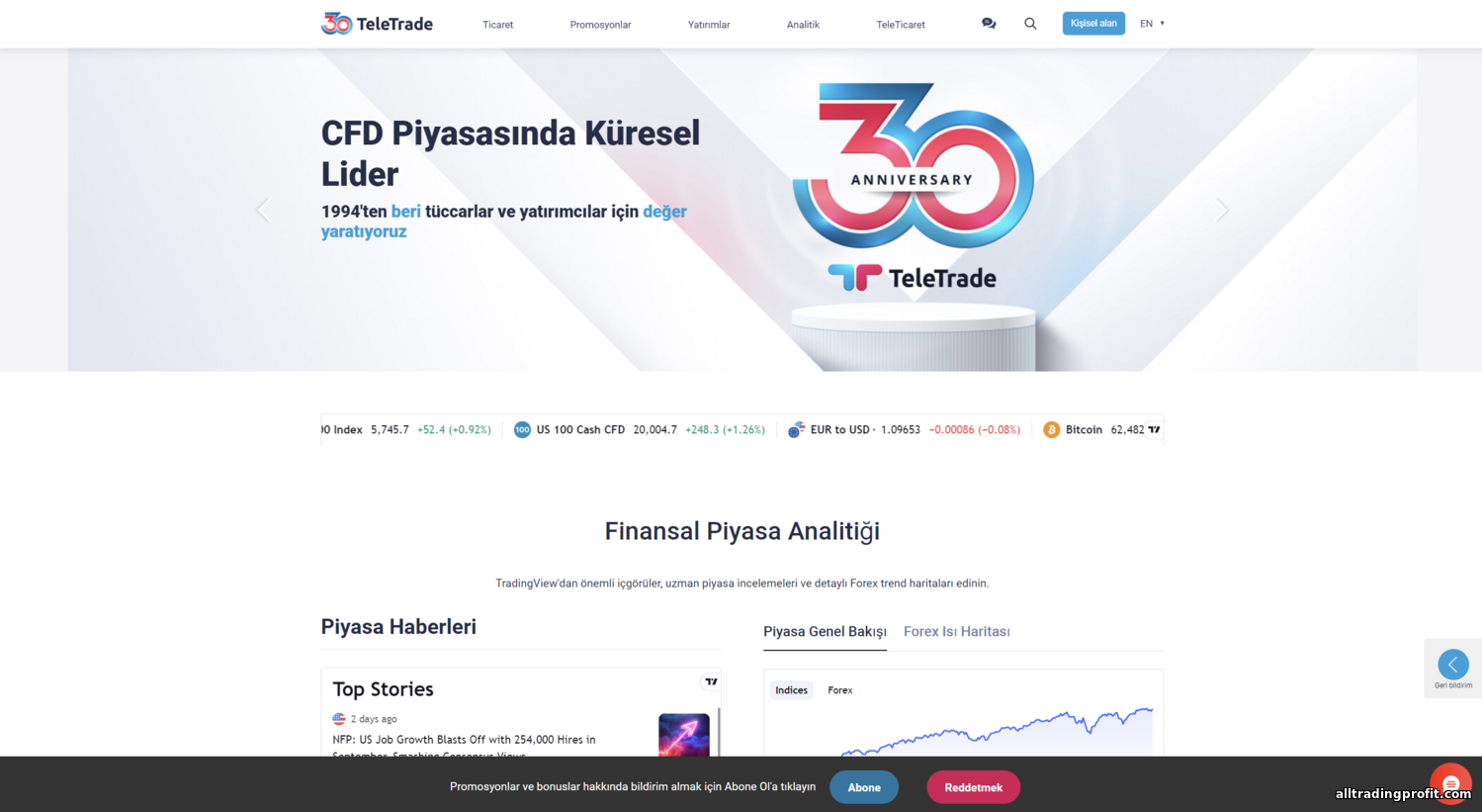 TeleTrade, 1994’ten beri faaliyet gösteren en eski forex brokerlarından biridir. On yıllar boyunca piyasada varlığını sürdürerek (geçmişte 30 ülkede 220’den fazla şube) geniş bir ofis ağı ve milyonlarca müşteri tabanı oluşturmuştur. Bu incelemede TeleTrade’i her açıdan ele alıyoruz: güvenilirlik ve düzenleme, işlem koşulları, ek hizmetler, destek kalitesi, gerçek yatırımcı görüşleri ve AMarkets, Alpari, FXPro ve RoboForex gibi rakiplerle karşılaştırma. Kullanıcılar ve uzmanlar ne diyor: TeleTrade bir dolandırıcılık mı, değil mi; güçlü ve zayıf yönleri neler ve burada hesap açmaya değer mi?